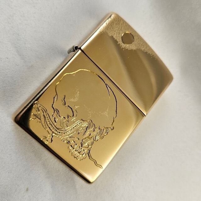 河鍋暁斎の作品のなかから「髑髏と蜥蜴」をもとに彫り上げました。